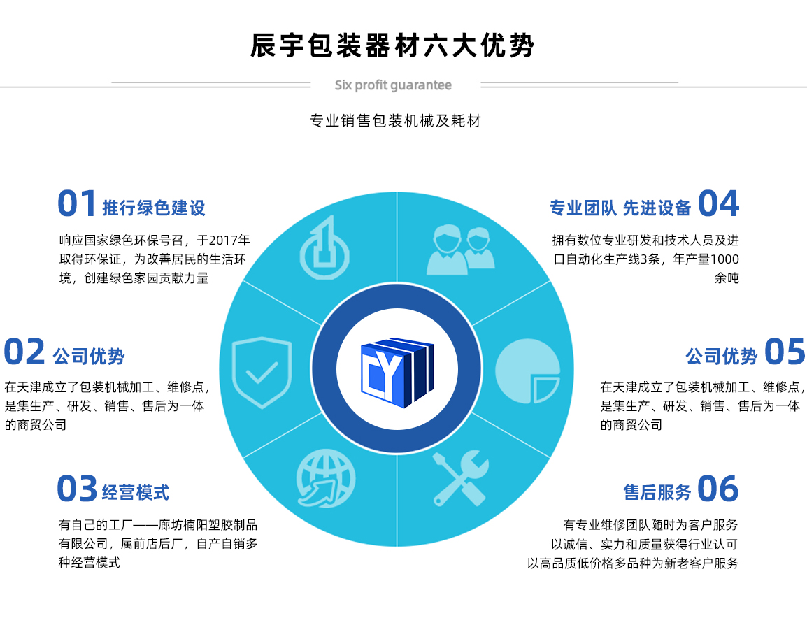 天津辰宇包裝器材有限公司原天津市辰宇商貿有限公司,位于天津市南開區(qū)密云一支路新南馬路五金城二區(qū)33棟106號,本公司主要經(jīng)營:打包帶,打包機系列,封箱機系列,纏繞機系列,拉伸膜,膠帶,尼龍繩,其他包裝耗材等產(chǎn)品 公司產(chǎn)品質優(yōu)價廉,暢銷全國各大城市。同等質量比價格,同等價格比質量,我們確保質量,價錢合理,交貨迅速及時。公司始終秉承“精益求精,鑄造品質的典范”的經(jīng)營理念,真誠為廣大客戶提供真誠的服務! 天津市辰宇包裝器材有限公司,感謝廣大新老客戶的鼎力支持,竭誠歡迎社會各界朋友前來洽談業(yè)務,愿真誠合作攜手共創(chuàng)美好未來!